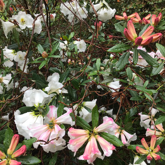 If you have ever visited Glenarn in May you will remember the huge patch of R lindleyi on Granny's Hens. A second mass planting of lindleyi from cuttings greets you when you arrive in the garden- the scent hits you first!