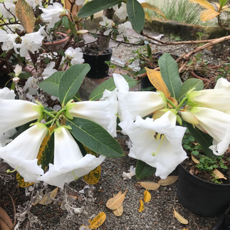 In the front section of our conservatory, attached to the house, several tender rhododendrons have been flowering for the past fortnight. Chip Lima gave us a wonderful plant of R veitchianum with large starry flowers that had become too big for its previous home and with this are several others, all scented, and 2 more still to bloom. It’s great to see them up close to try to identify them but not easy- they are all in the Maddenii group. In a couple of weeks we will put them outside for the summer- keeping them fresh and bug free.